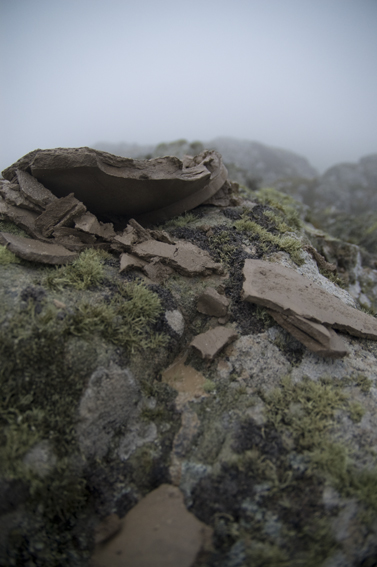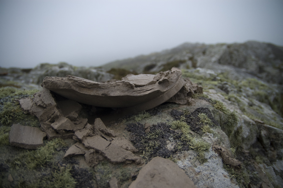 By nine o’clock at night this is all that was left of my Moon Jar. The wind and rain had in a single day reduced the pot to little more than a pile of soggy shards. The foot ring of the Jar was the all that remained. Up there the weather was really wild, standing trying to take pictures it was not so surprising that the Jar weathered away so quickly.